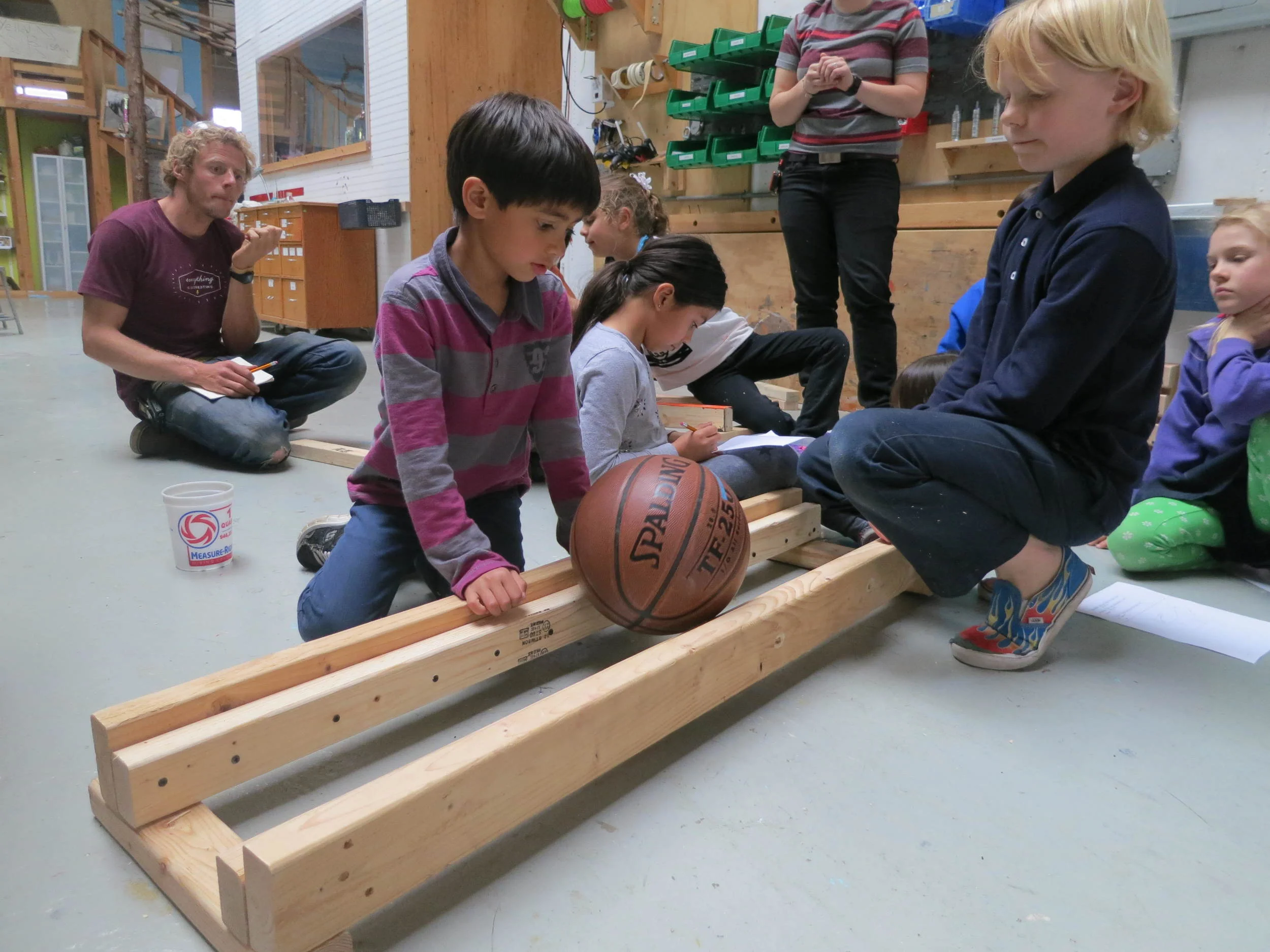 Last Tuesday, we left the sessions with a couple very important lessons concerning the ball run project: our original track prototype was a little too wide to balance the ball, and our original ball was too heavy (+dangerous) to start from the height that the Tinkerers proposed.