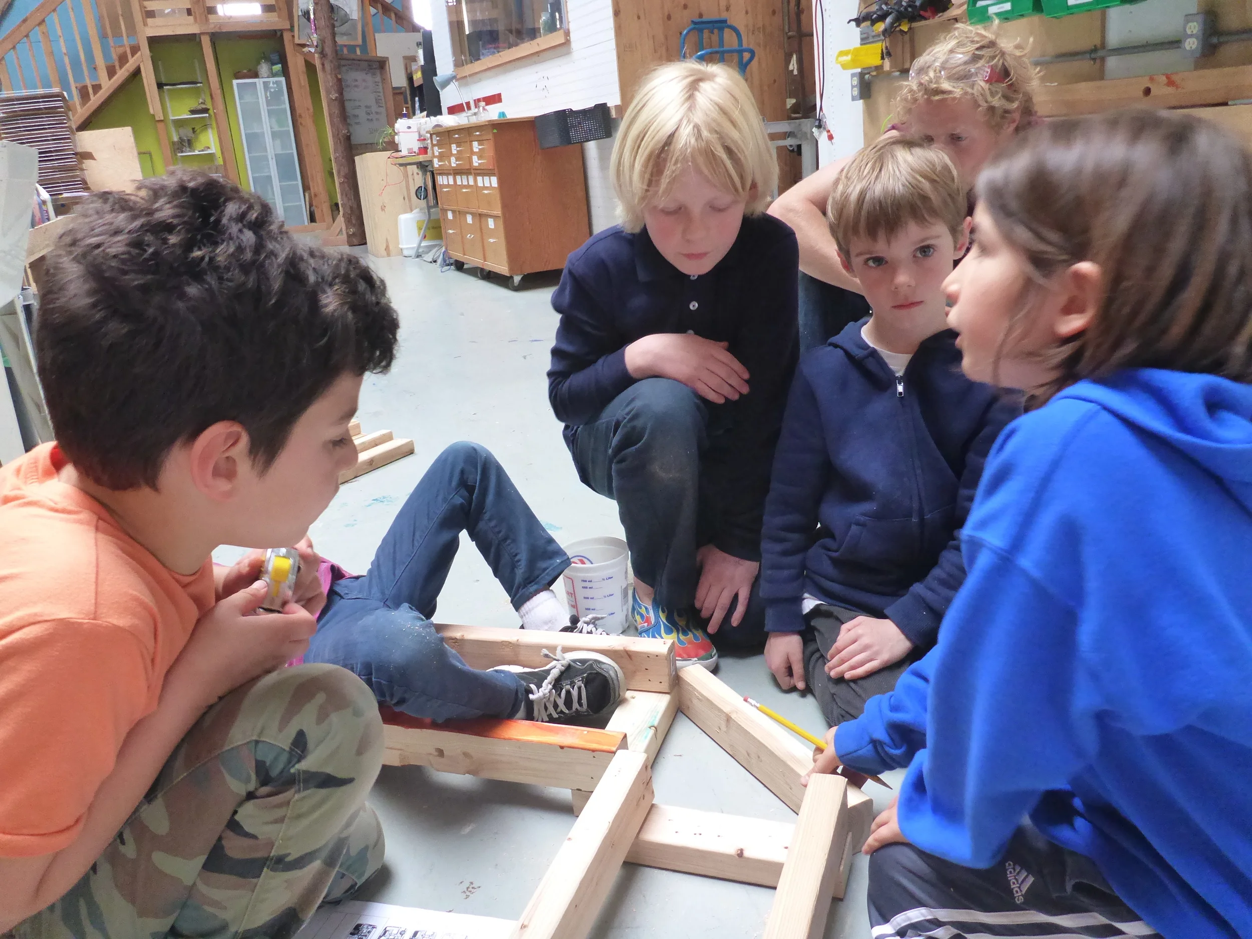 Halfway through the session, both groups came together, pitched their designs and shared their progress. The design team's zig-zag proposal presented a new challenge to the team working on the track -- how are we going to make the ball turn?