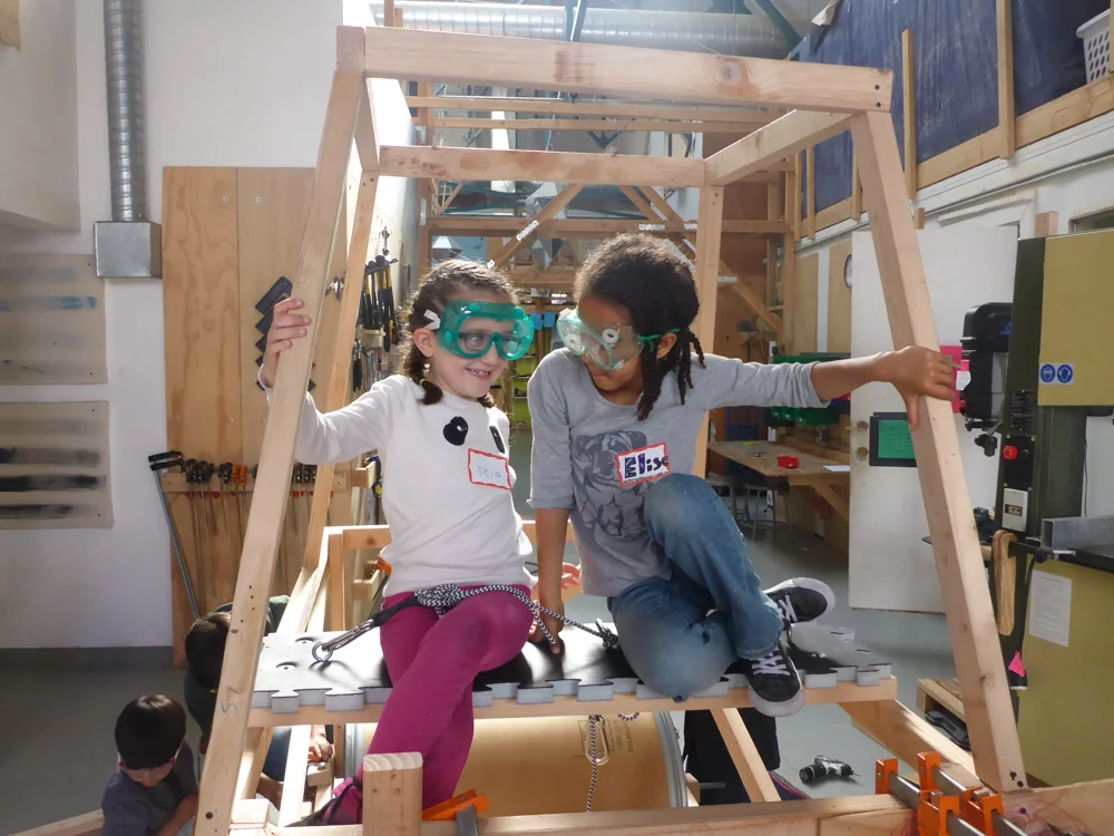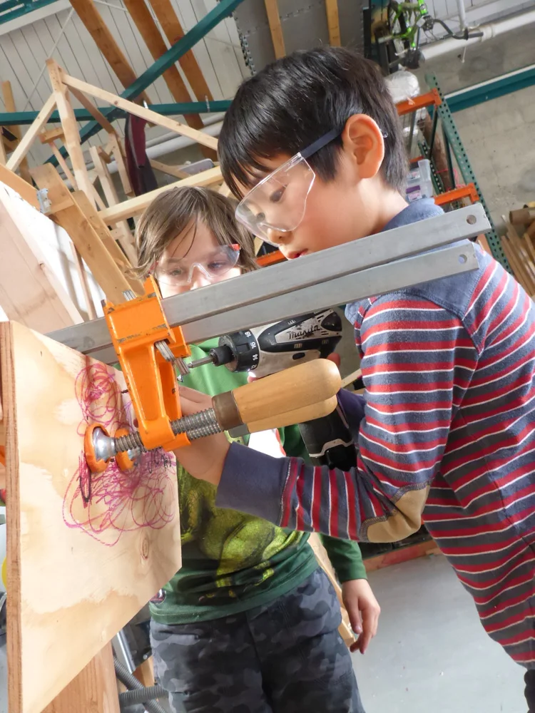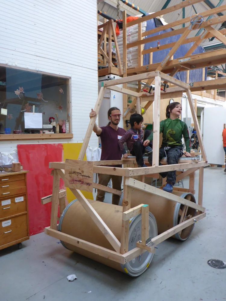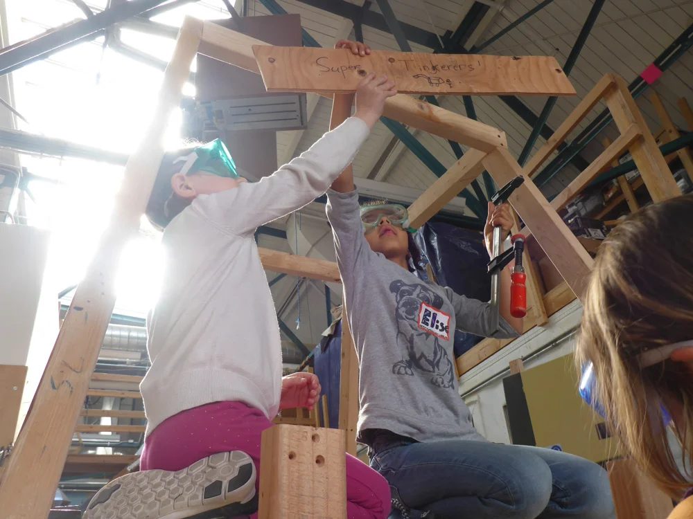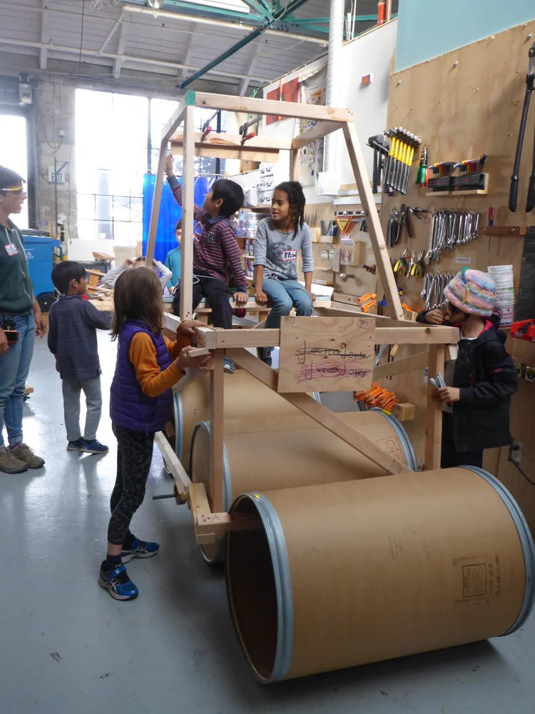 The last day of Wednesday After School! Straight off the bat, the tinkerer's wanted to add seat belts for safety. This was a great idea, and we used a combination of rope, eyebolts, carabiners, and bungees to create strong, secure seat belts.