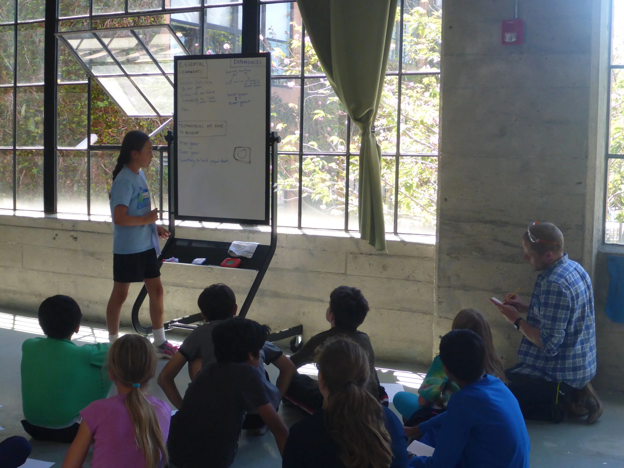 With a design challenge comes a brainstorm session. Sophia shares her ideas with the Spirograph group.