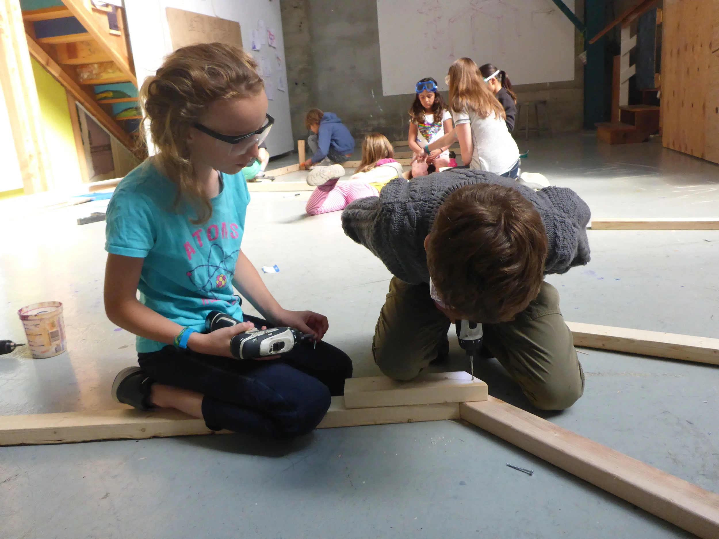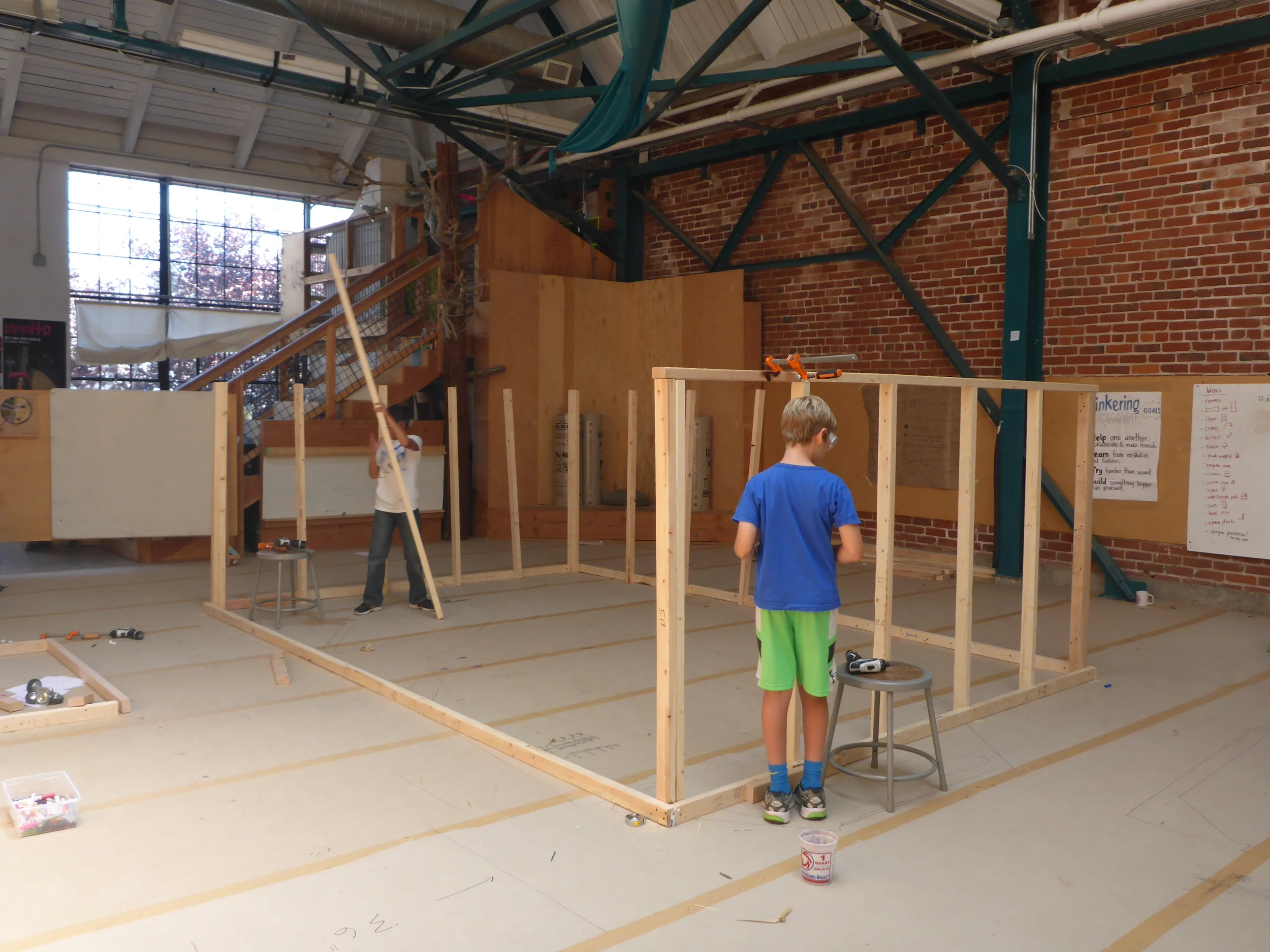 Here is our spacecraft, The T.S. Gever Tulley This beauty is going to carry us off of earth and deep into the galaxy so we can step foot onto a newly discovered planet, and take samples from the newly discovered alien dragon. Most of our highly trained astronaut-fabricators are working on the main frame of the craft, while some are working on some other crucial parts such as the space toilet, sample crane, and our state of the art control panel.