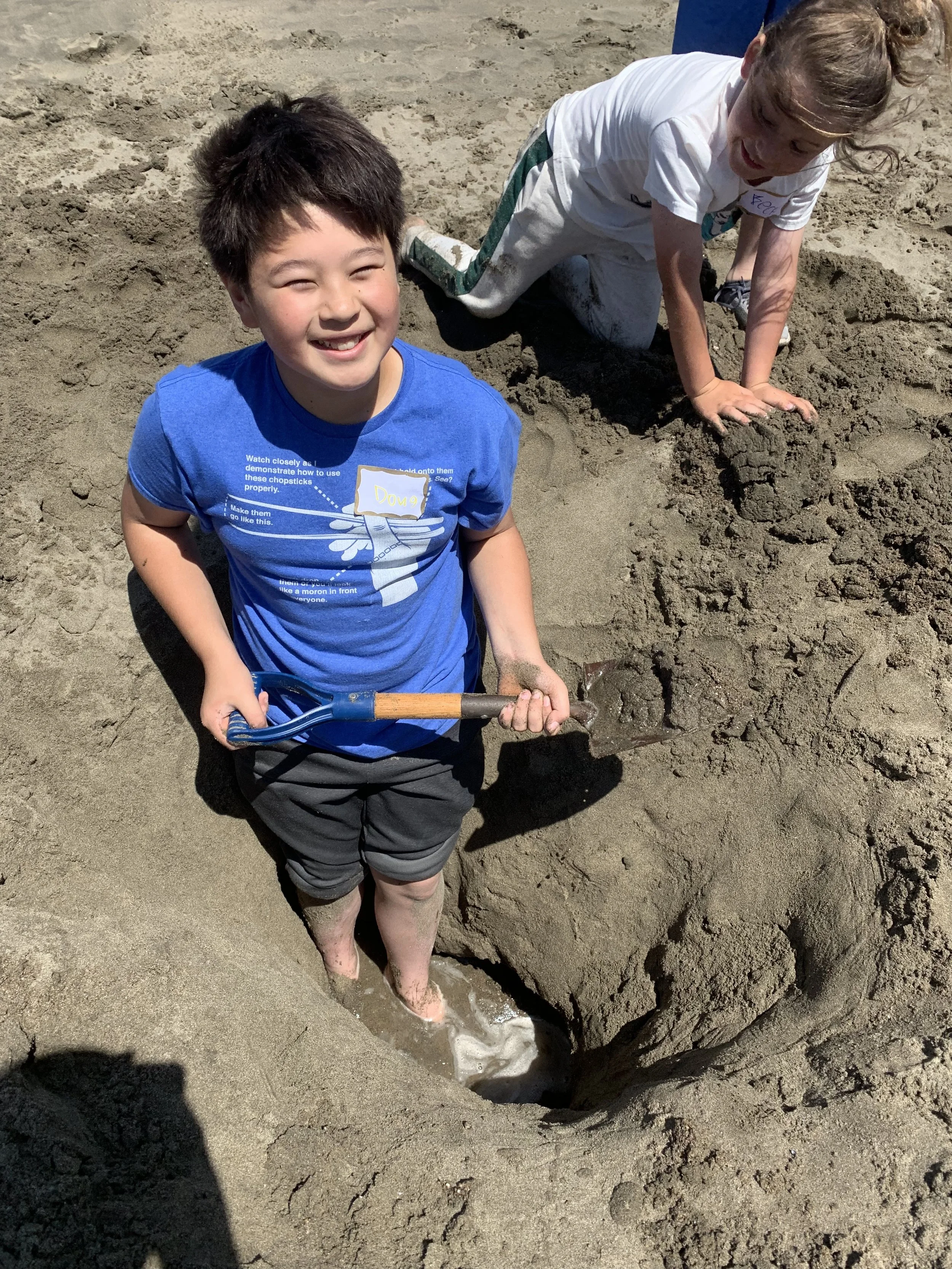 The weather today was so wonderful that we were able to spend our lunch time at the beach. Some tinkerers brought a shovel, and combined with our buckets we were able to dig some extremely deep holes and build extravagant sandcastles!