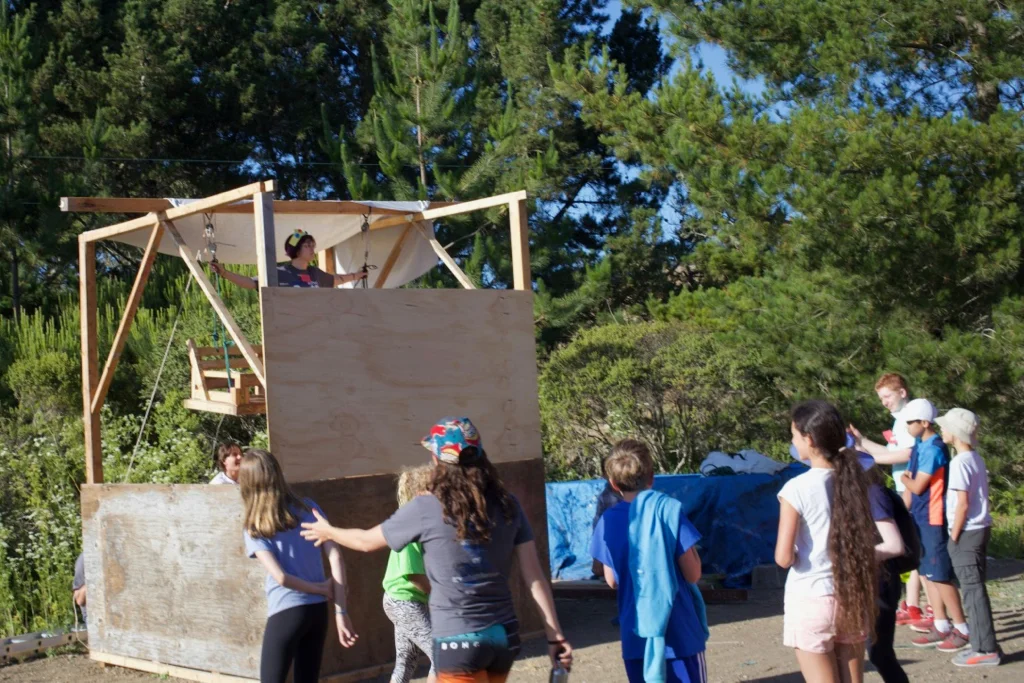 Caroline, our Camp Captain this week, tests out a chair made from clamps.